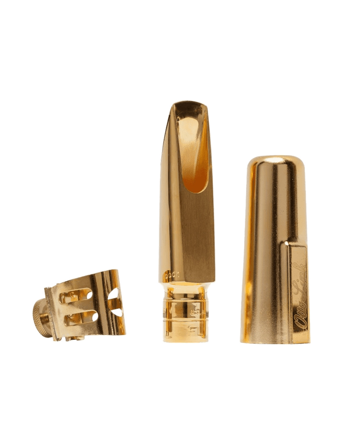 Le imboccature Otto Link includono cappuccio di protezione in plastica e una legatura a doppia vite in metallo che garantisce una presa perfetta del sassofono sul becco. Le imboccature in metallo placcato oro 24 carati, sono dotate, inceve, di legatura ad una sola vite. La legatura serra una piastra posizionata vicino al tallone della canna che esercita la sua pressione su quattro punti, offrendo così una maggiore facilità di vibrazione.