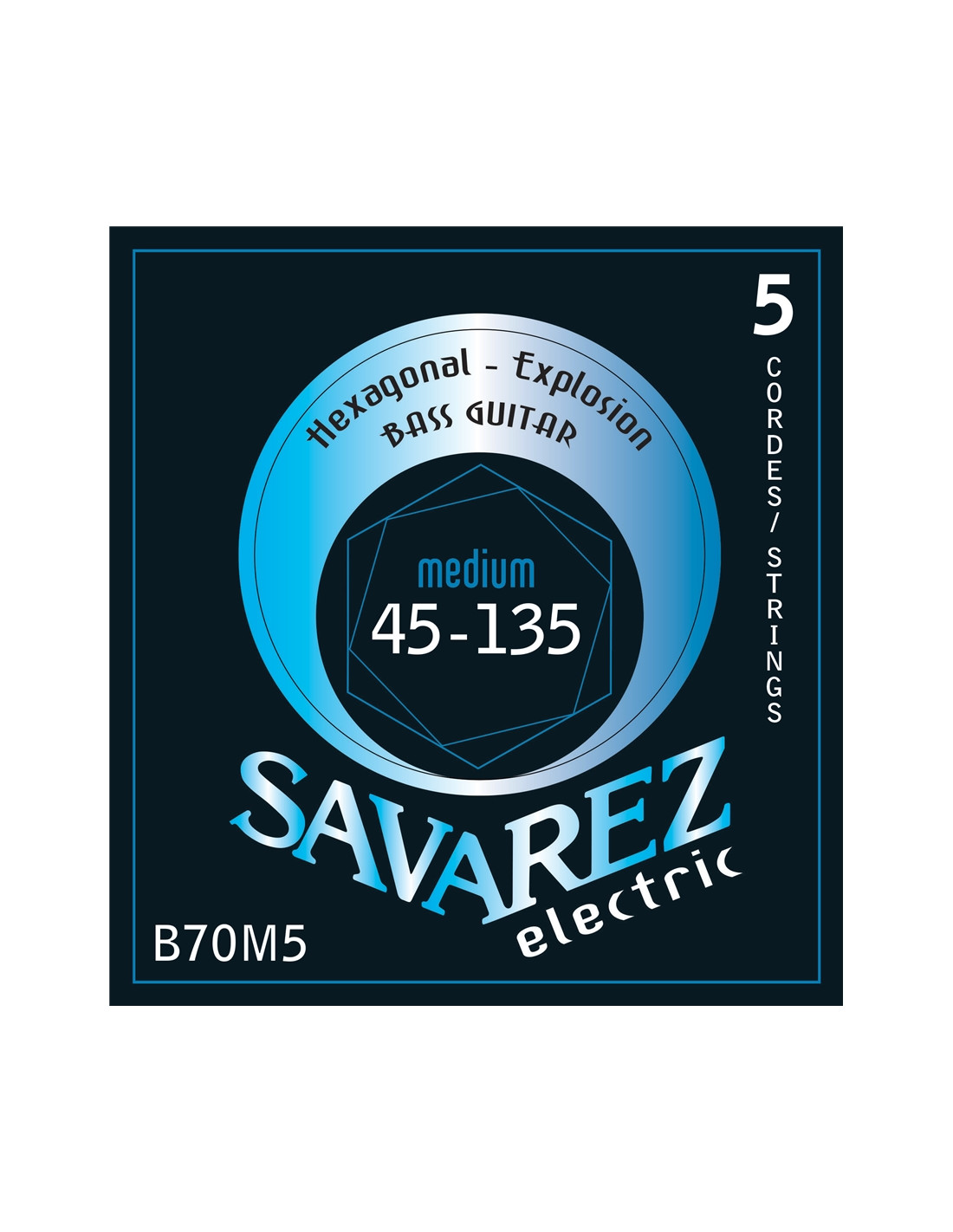 B70M5 è il set di corde per basso elettrico 5 corde della serie Hexagonal Explosion di Savarez, realizzate in metallo nichelato con un nucleo di acciaio esagonale. Queste corde offrono una risposta precisa, una proiezione rapida e un suono potente. Set medium, 45-135.