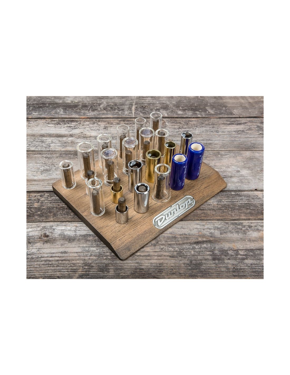 L'espositore degli Slide Dunlop più attraente di sempra che permette ai chitarristi di provare una grande varietà di Slide. 22 slide compresi.